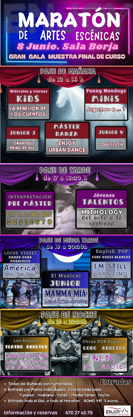 Gran Muestra Final de Curso, Sábado 8 de Junio en Sala Borja (TODO EL DÍA)